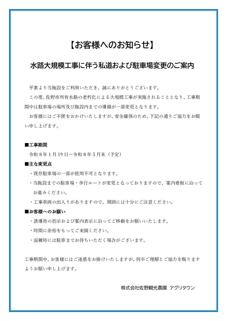 一部の道路・駐車場の仕様が変更となっておりますので、ご来園の際はご注意ください。